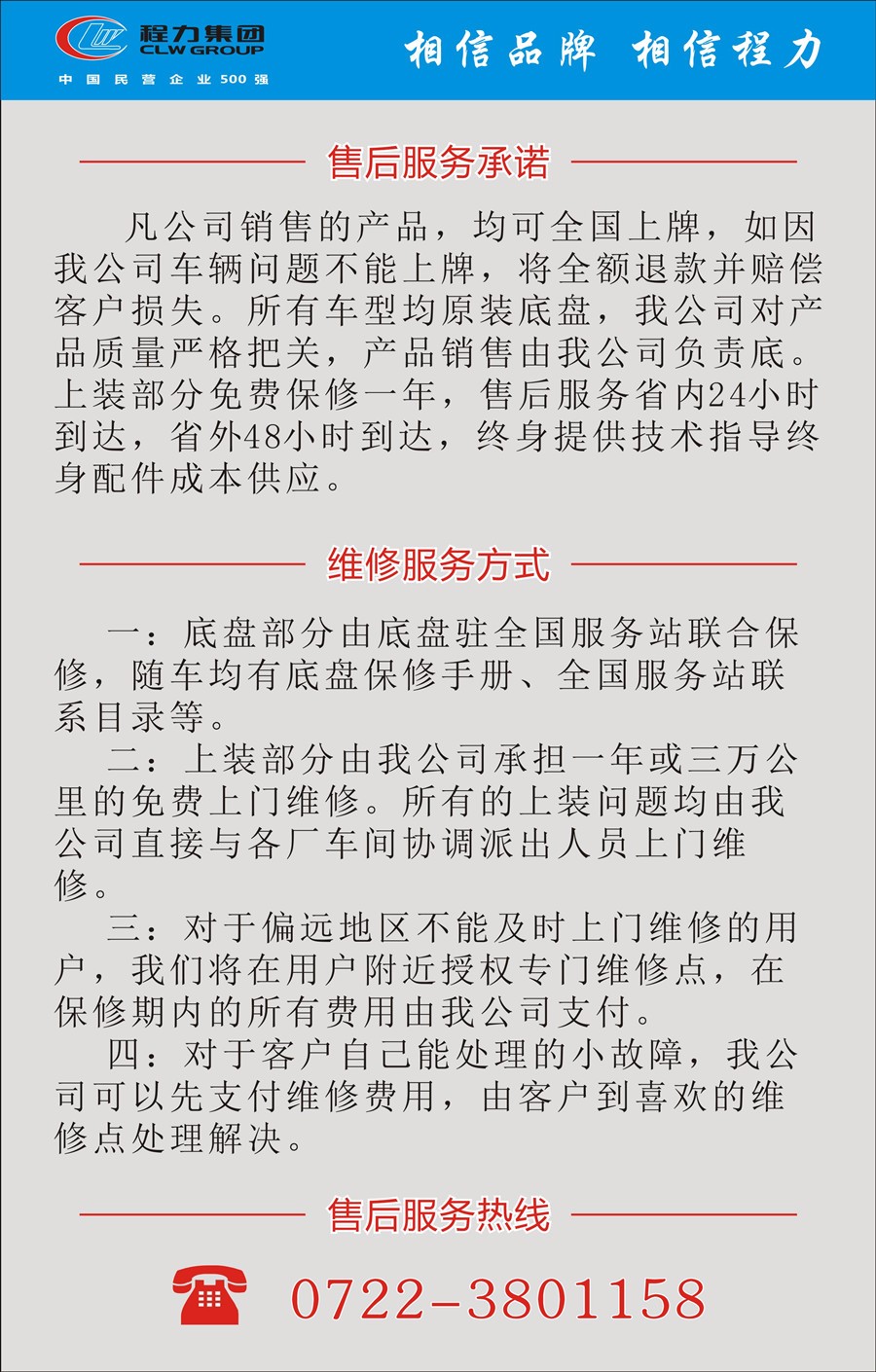 整车出具:正规底盘合格证,正规整车合格证,正规车辆购置税发票,全国统一机动车,随车工具,车辆质保手册,车辆使用说明书,全国服务站名录等。让您上户无忧,方便快捷!